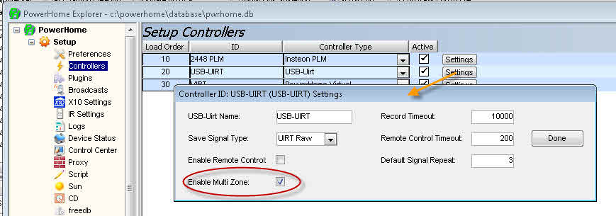 I'll start with a little bit about the USB-UIRT. Later versions of this device are indeed capable of multi-zone control (3 to be exact). A post on the USB-UIRT forum explaining the multi-zone support can be found here: http://65.36.202.170/phpBB2/viewtopic.php?t=266&highlight=zo ne&sid=926f4ba0a84f48636c5b1793e87bc705 . To enable multi-zone support for the USB-UIRT, you must check the "Enable Multi-zone" option in the USB-UIRT Settings window under Controllers.